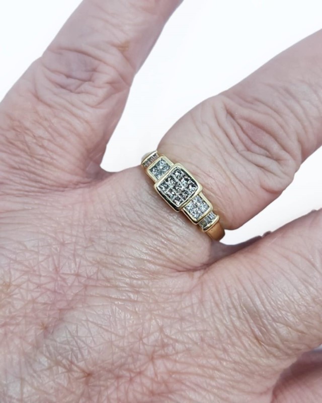 Description: 9CT YELLOW GOLD AND DIAMOND RING
