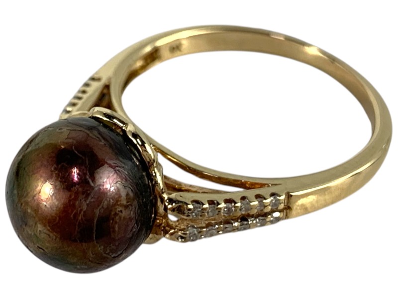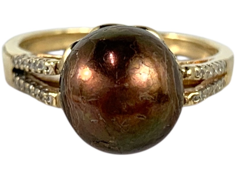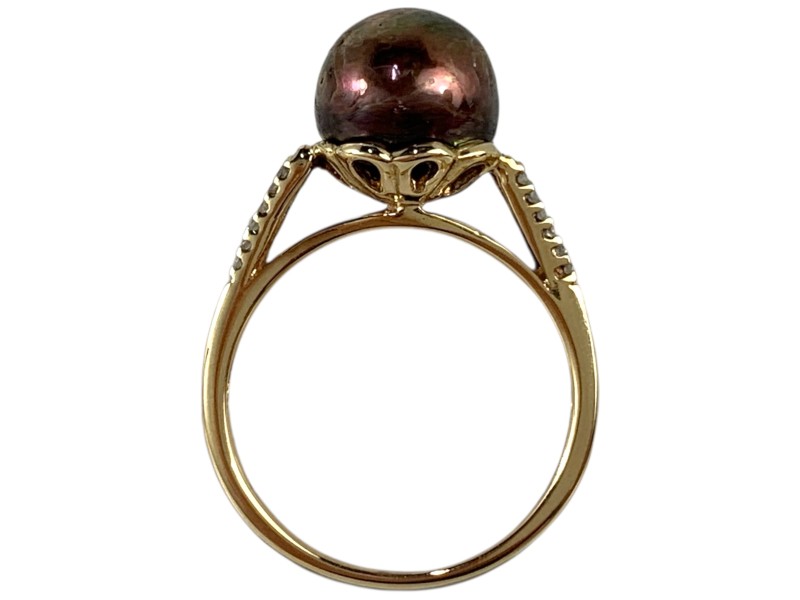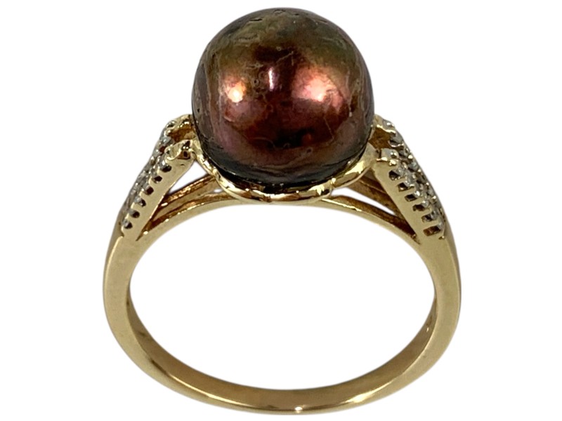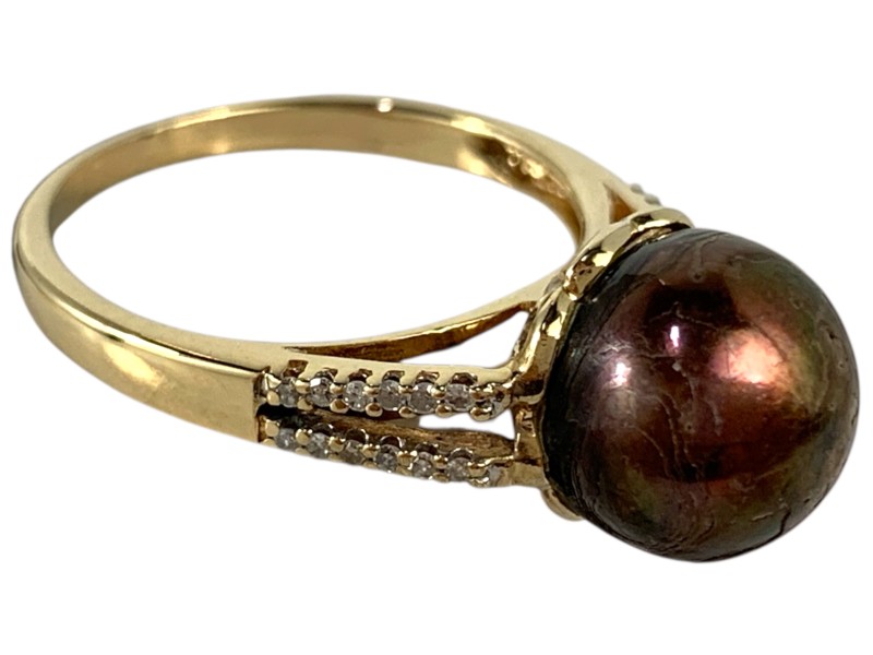 Description: 9CT YELLOW GOLD TAHITIAN PEARL AND DIAMOND RING - 3 CHIPPED