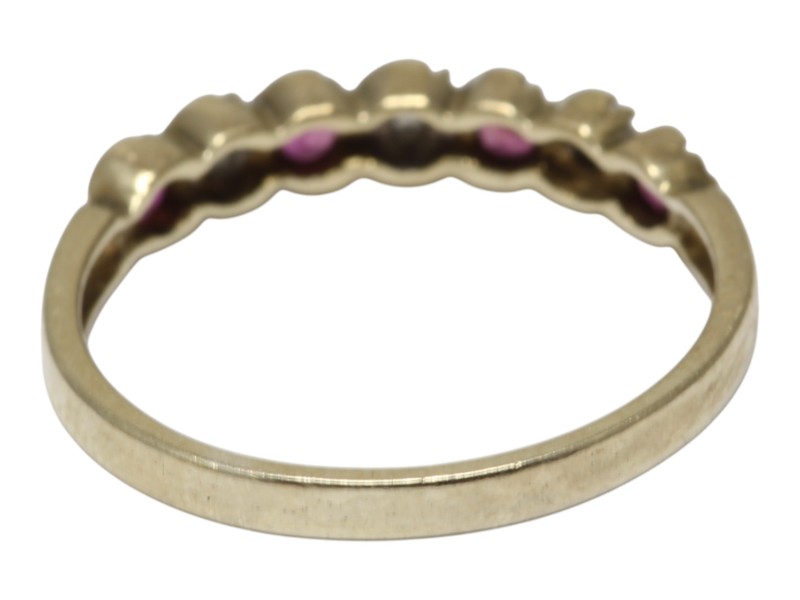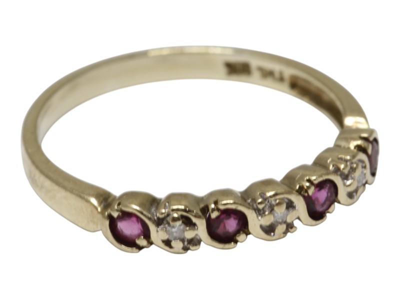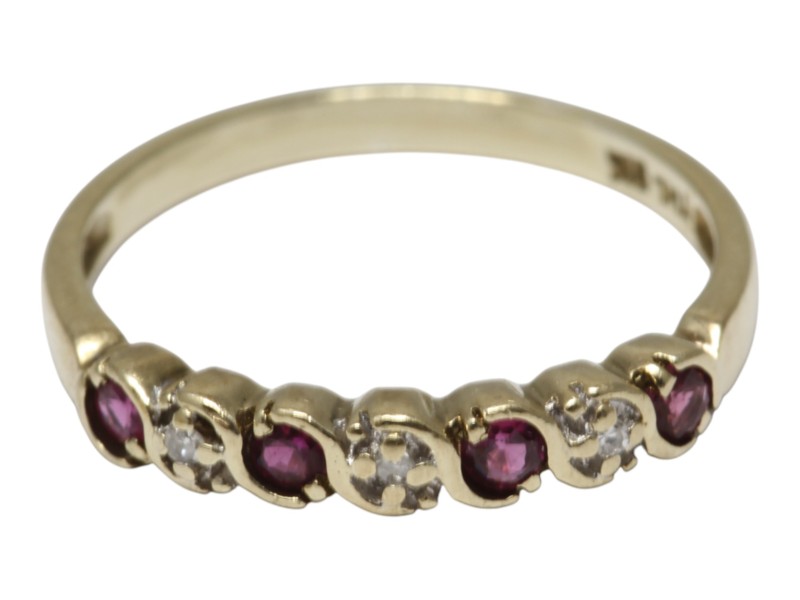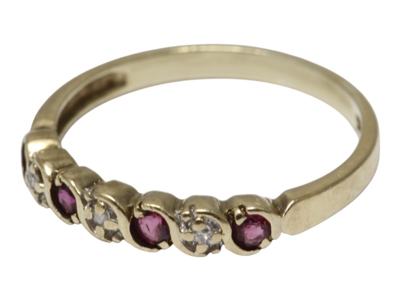 Description: 9CT YELLOW GOLD AND DIAMOND RING WITH RED STONES