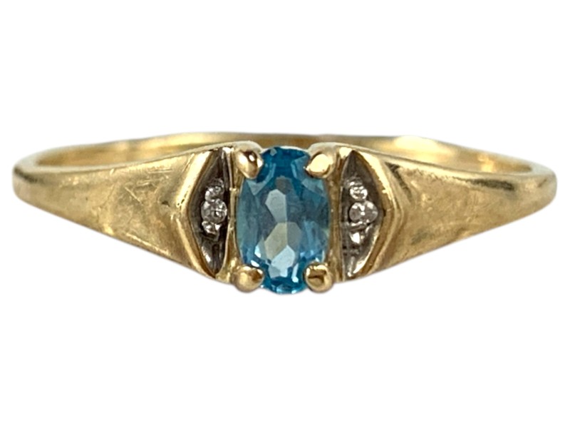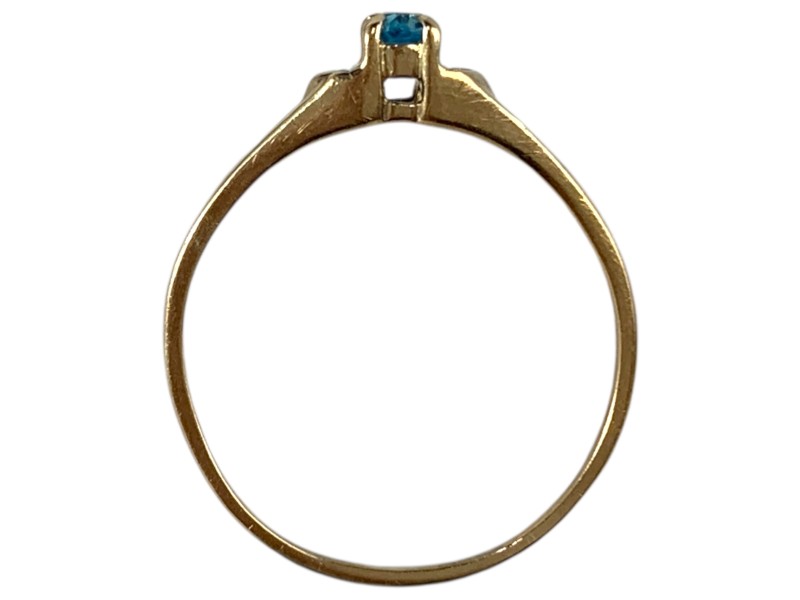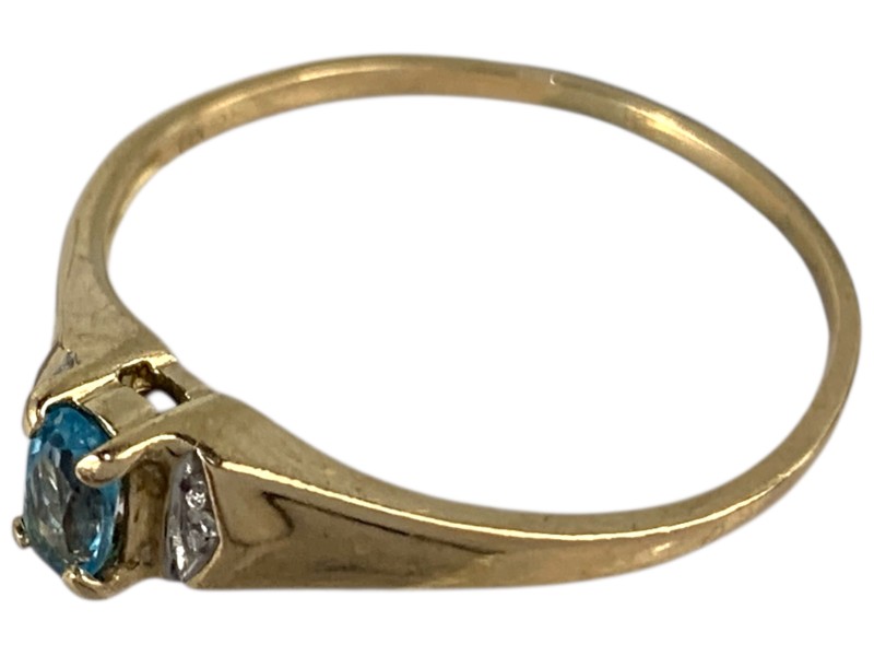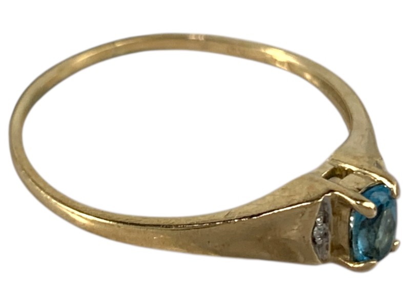 Description: 9CT YELLOW GOLD RING WITH CLEAR/BLUE STONE-S - SHANK IS THIN
