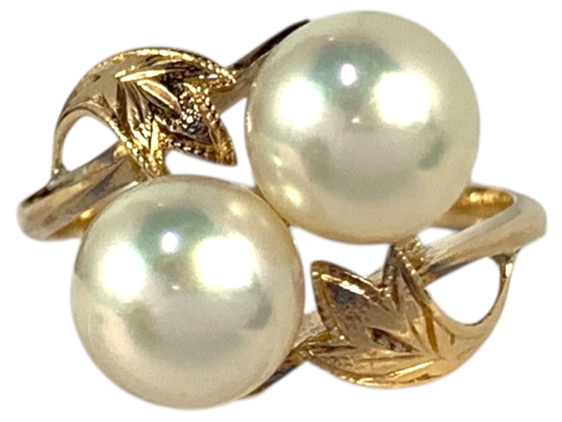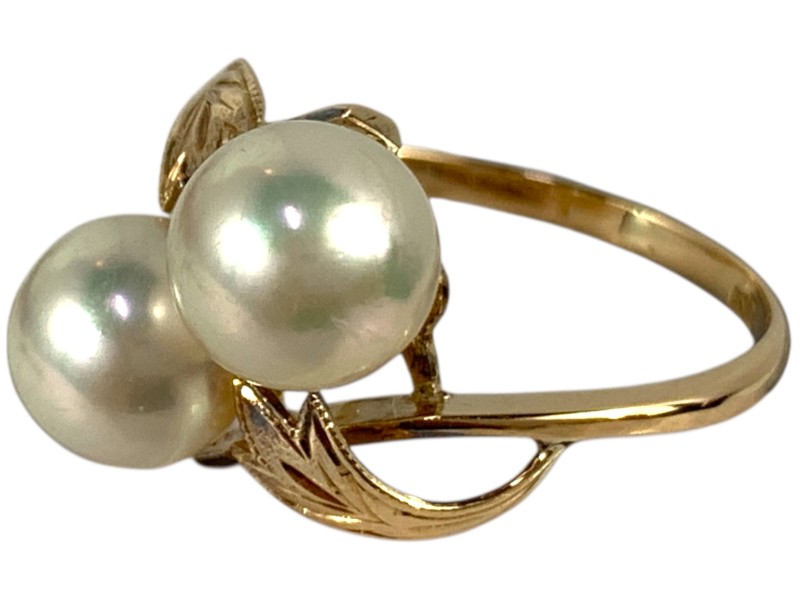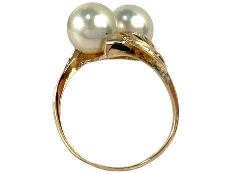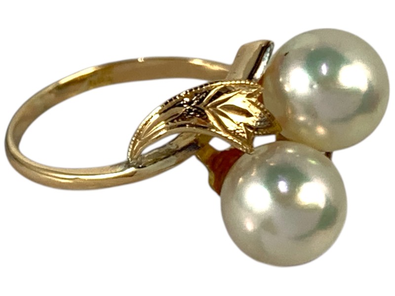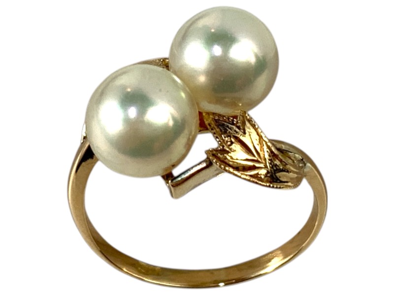 Description: 18CT YELLOW GOLD RING WITH 2 X 7.5MM AKOYA PEARLS