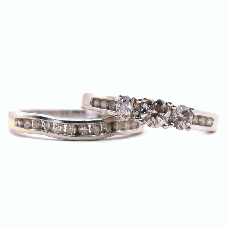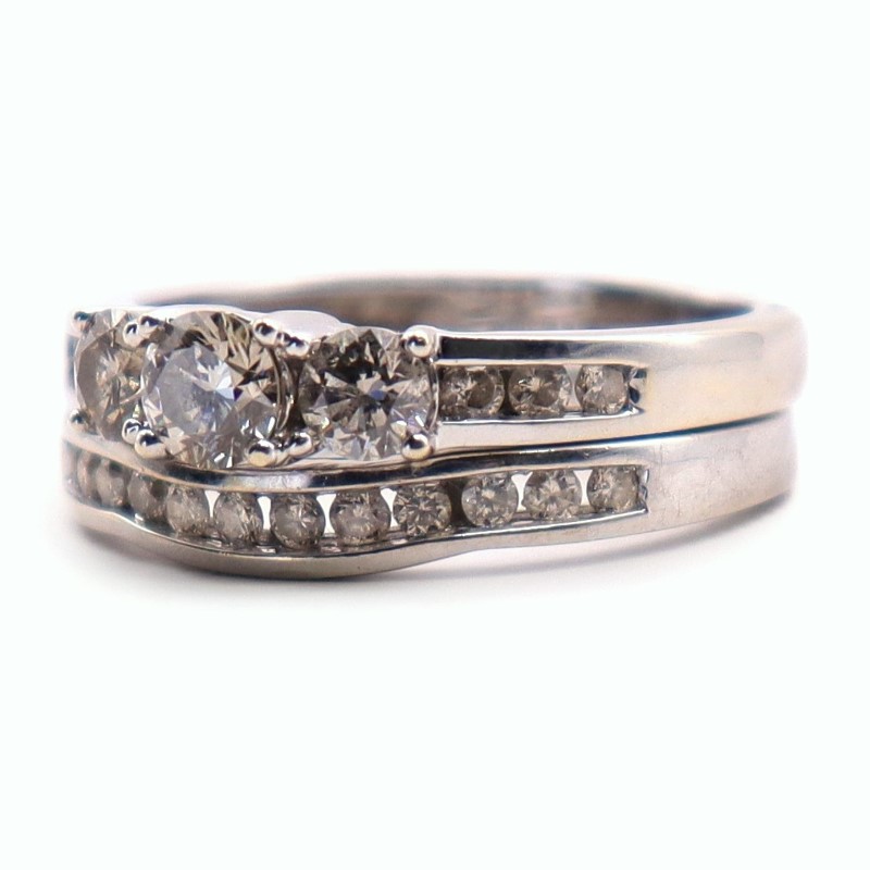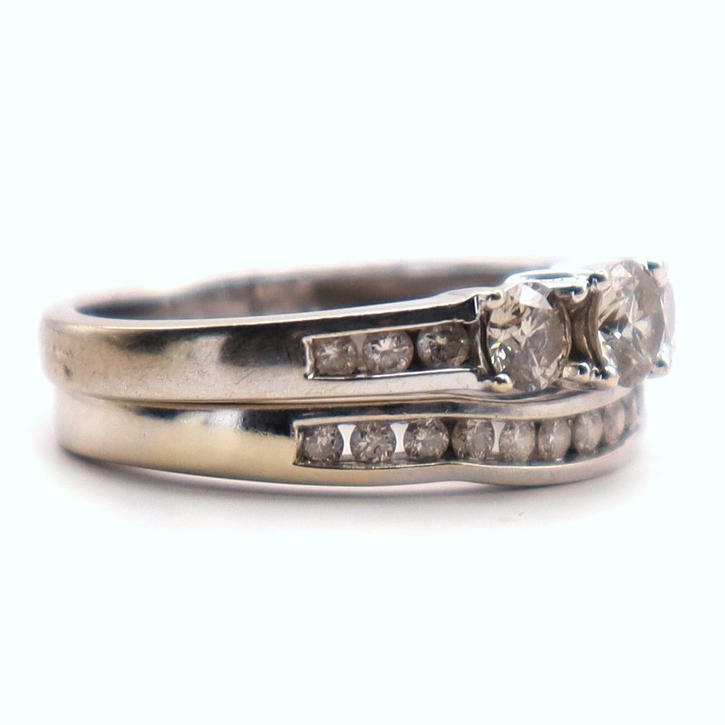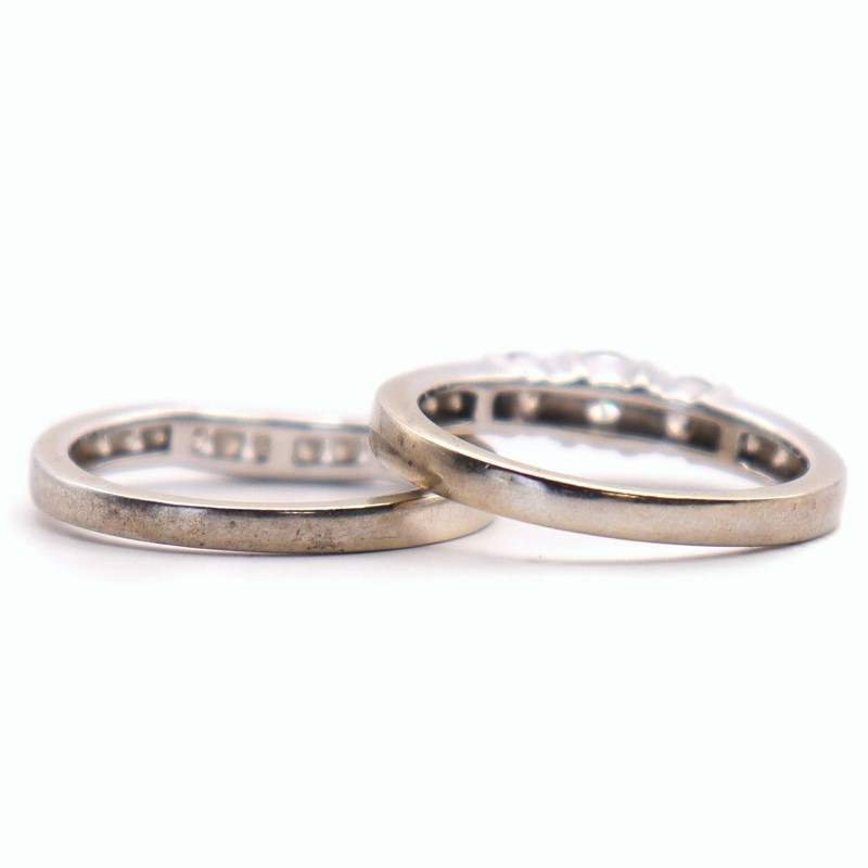 Condition: Okay preowned condition, rhodium plating required, heavy markings on band.