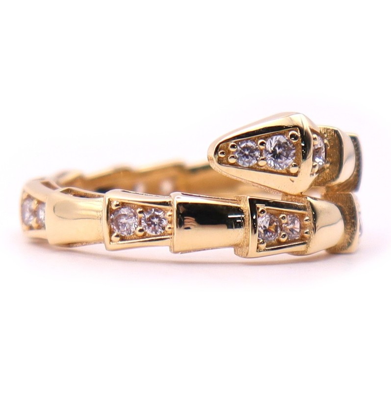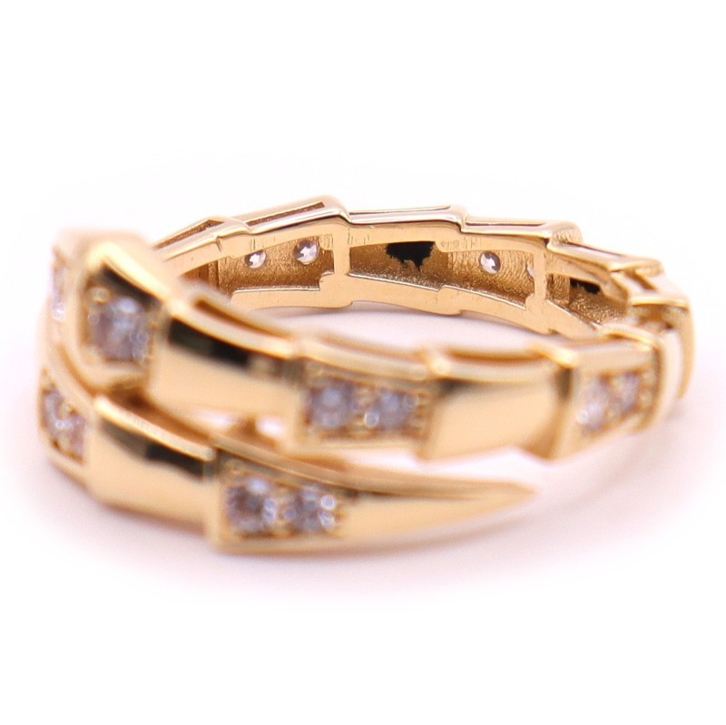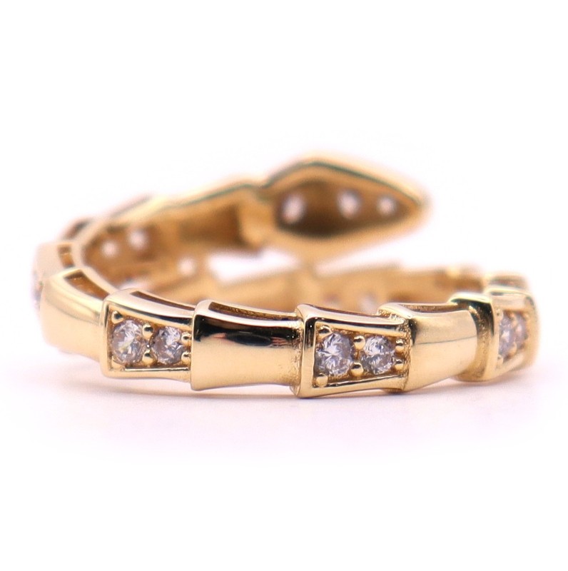 Exquisitely crafted in 18K yellow gold, this stunning unisex ring features a captivating snake design with 18 moissanite stones set around the band. With a weight of 4.78 grams and a ring size of R, this versatile accessory is a delightful addition to any jewellery collection. All sizes and measurements are approximate.