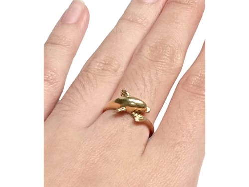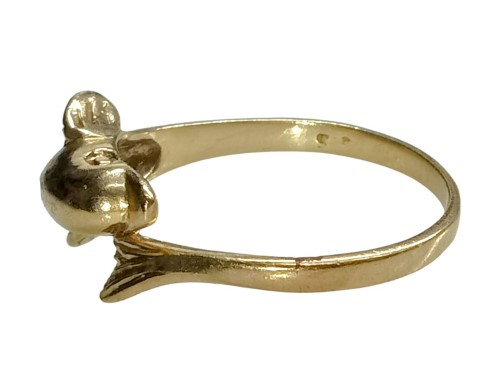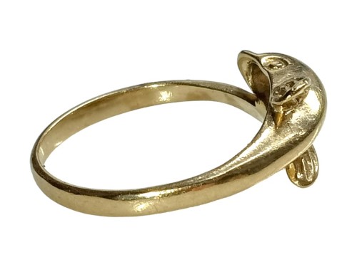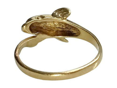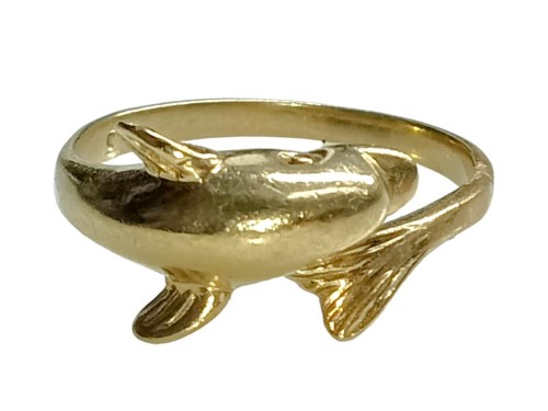 This 9ct yellow gold dolphin/fish ring is a charming and unique piece, perfect for those who love ocean-inspired designs. Weighing 2.03g, it offers a comfortable fit in size N. The ring's intricate dolphin or fish design adds a playful yet elegant touch to your jewelry collection. Crafted from high-quality yellow gold, it combines durability with a beautiful, polished finish. This ring has been thoroughly tested and cleaned, ensuring it is in excellent condition and ready for immediate wear.