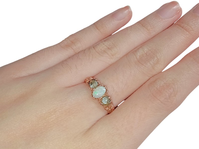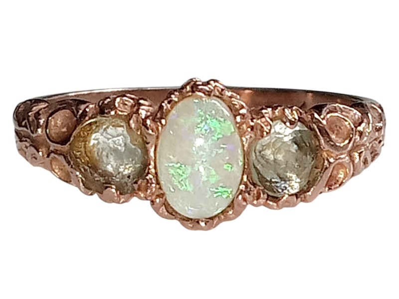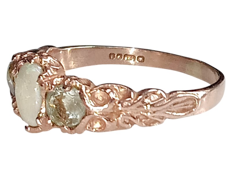 This elegant 9ct rose gold ring features a dazzling crystal opal stone at its centre. Crafted with a delicate and feminine design, the ring has a hallmark of .375, indicating its quality and authenticity. Weighing a modest 2.4 grams, this size M½ ring is the perfect accessory for the modern lady. All sizes and measurements are approximate.