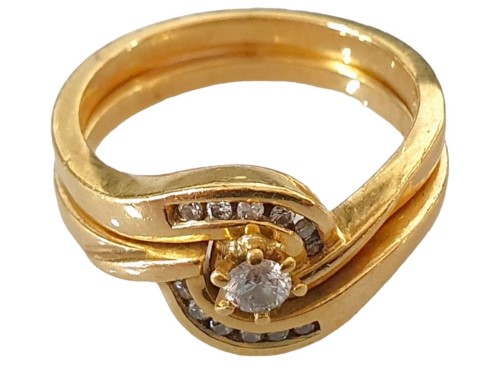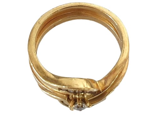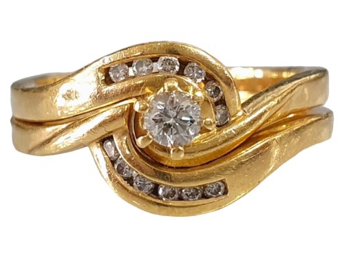 18K YELLOW GOLD RING SET WITH SIX 0.01CT, SIX 0.001 AND ONE 0.15CT DIAMONDS.