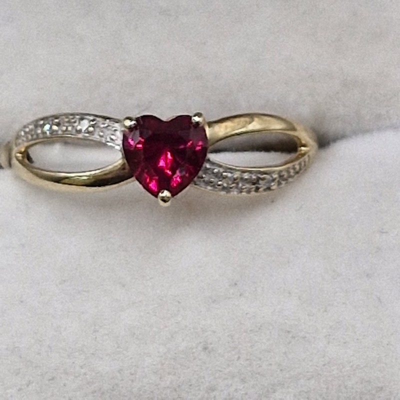 Make / Model: 9ct Yellow Gold Ladies Ring With Red Heart Shape Stone