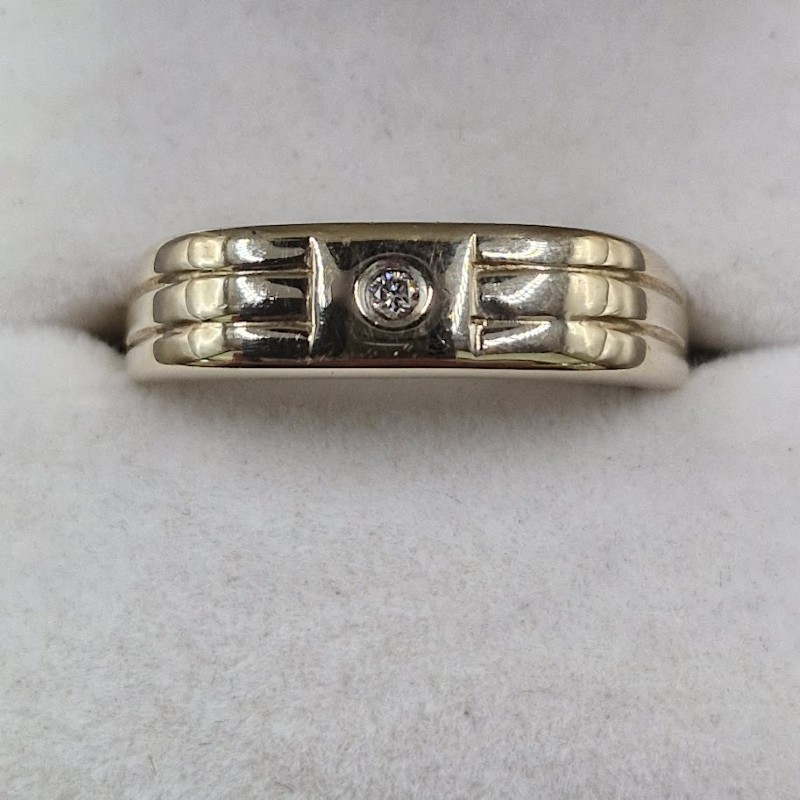 Make / Model: 9 ct Yellow Gold Gents Ring With Single 2 Pt Diamond