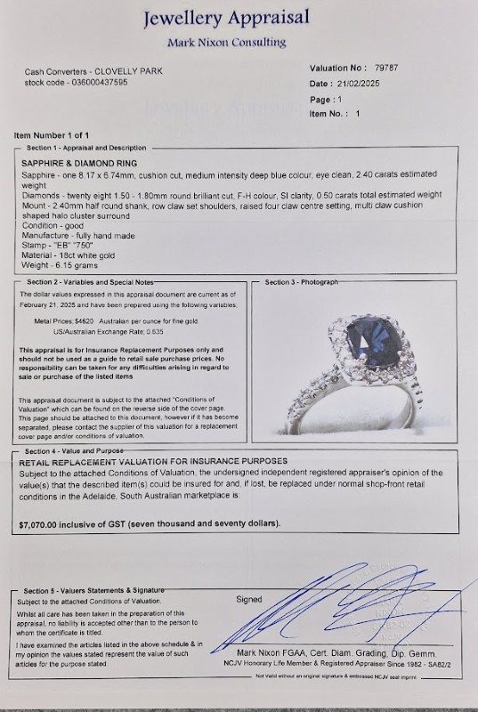 Make / Model: 18ct White Gold Sapphire & Diamond Ladies Ring