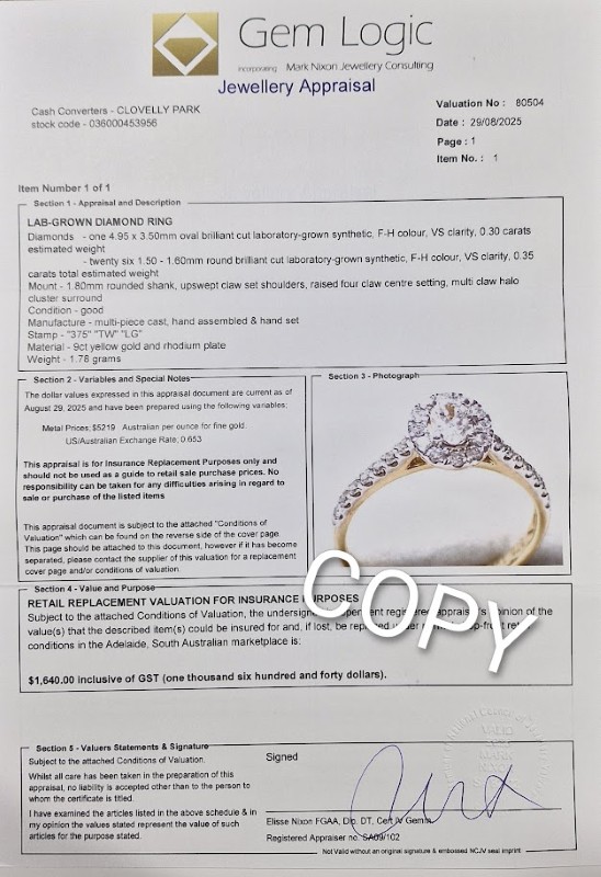 Make / Model: 9 ct Yellow & White Gold Lab Grown Dimaond Ring