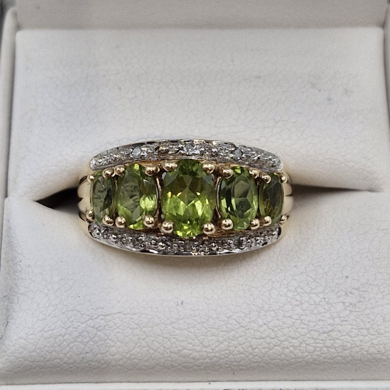 Make / Model: 9ct Yellow Gold Green Stone And Diamond Ring