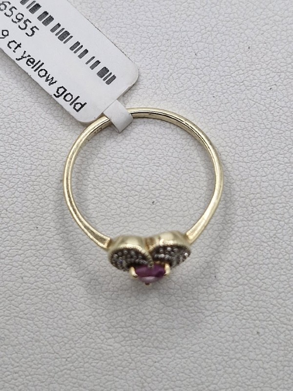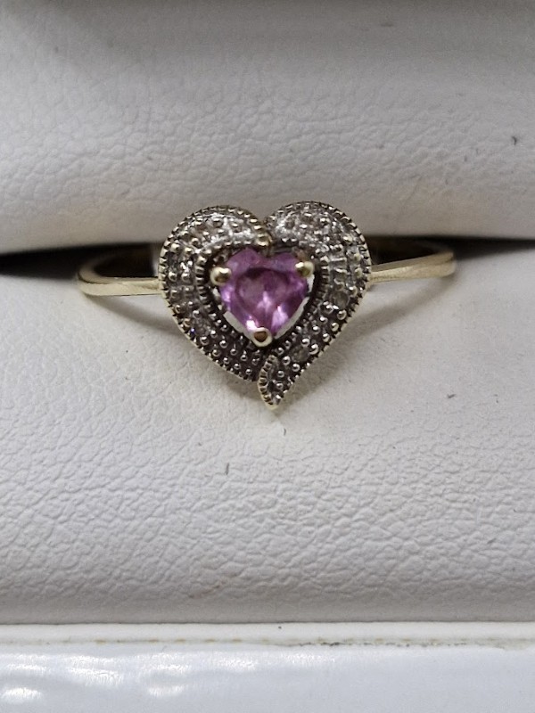Make / Model: 9 ct Yellow Gold Heart Pink Stone Ladies Ring