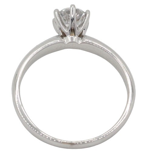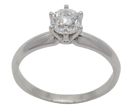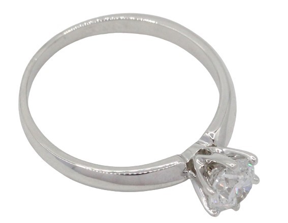 This exquisite ring features a single, round brilliant-cut diamond, expertly set in a classic 6-claw coronet setting that enhances the stone's natural brilliance. The diamond, weighing 0.60 carats, boasts an impressive E color grade, ensuring a bright, clear sparkle that captivates the eye. The stone's P1 clarity further adds to its charm, making it a standout piece for any occasion.