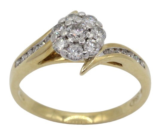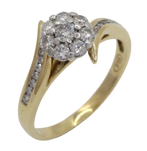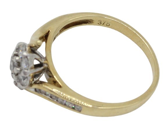 Experience the elegance and brilliance of this 9ct yellow and white gold diamond cluster ring, a dazzling piece that radiates luxury and charm.