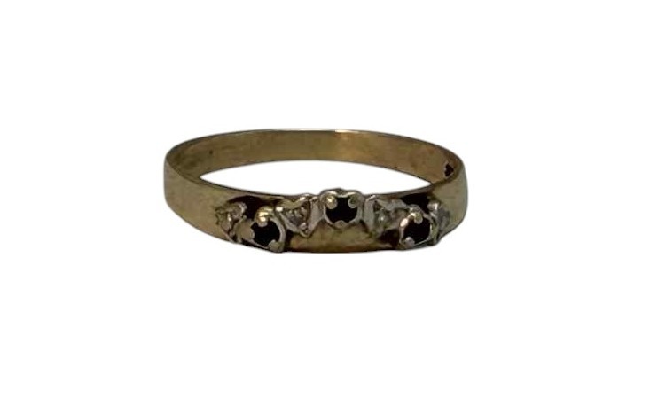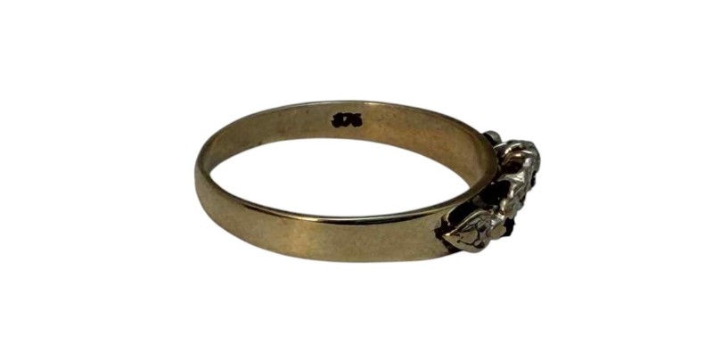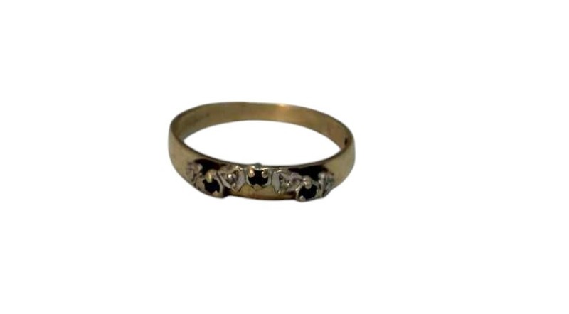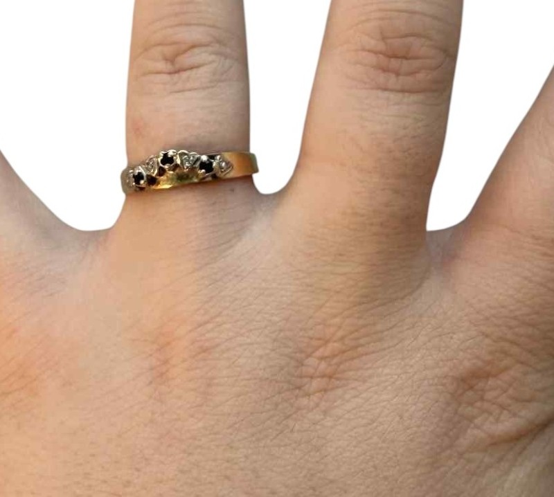 Make / Model: 9ct Yellow Gold 3 Black Stones 2 Diamonds Accent Ring