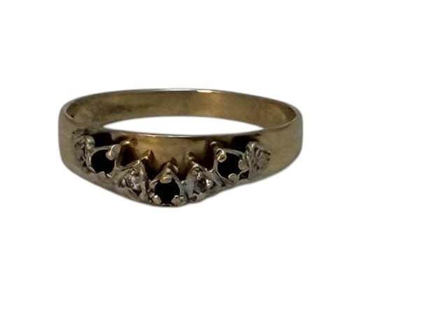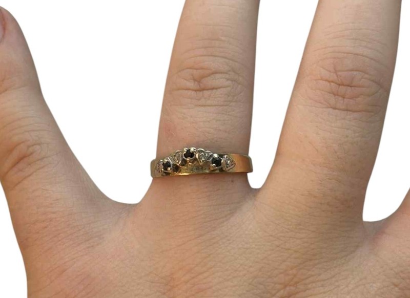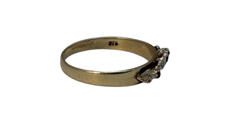 Make / Model: 9ct Yellow Gold 3 Black Stones 2 Diamonds Accent Ring