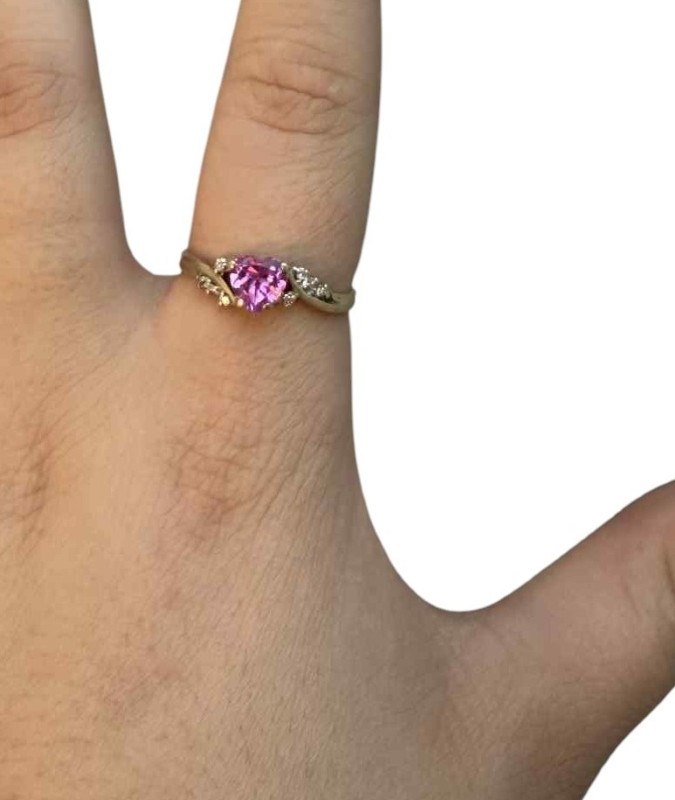 Cute Light Pink Heart Shaped Stone With Clear Shoulder Stones Yellow Gold Ring