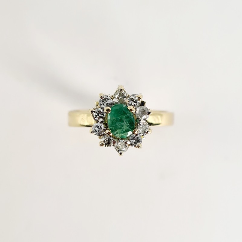 Make / Model: Oval Cut Natural Emerald With Diamond Flower Halo Setting