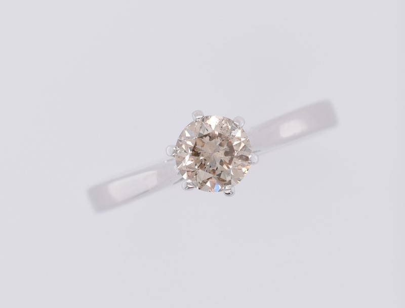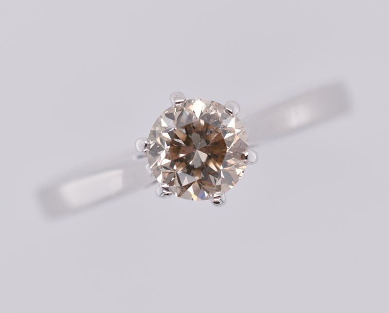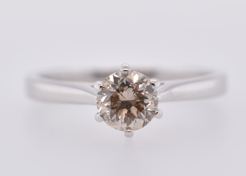 14ct White Gold Solitaire Fancy Light Brown Diamond Ring