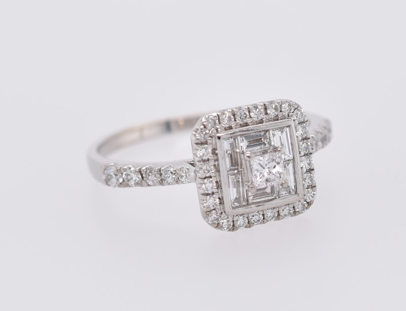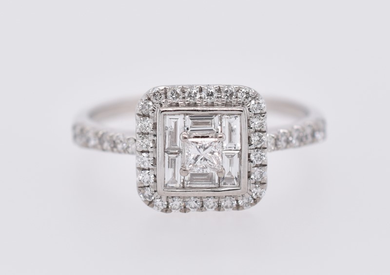 18ct White Gold Cluster Princess & Baguette Cut Diamond Ring