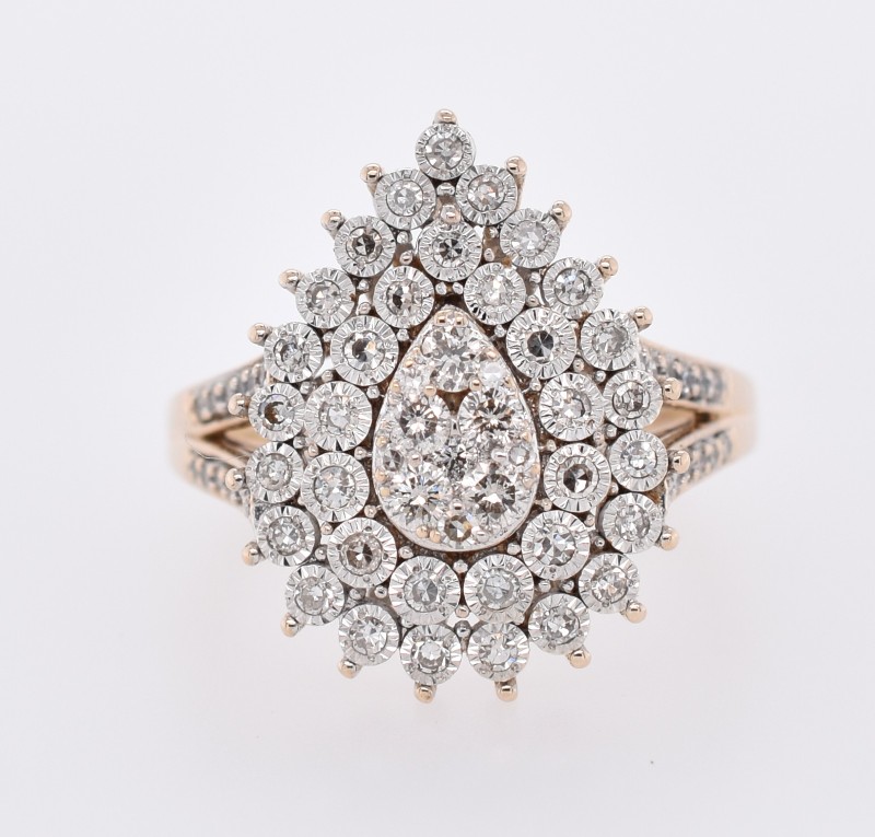9ct Yellow Gold Diamond Cluster Dress Ring