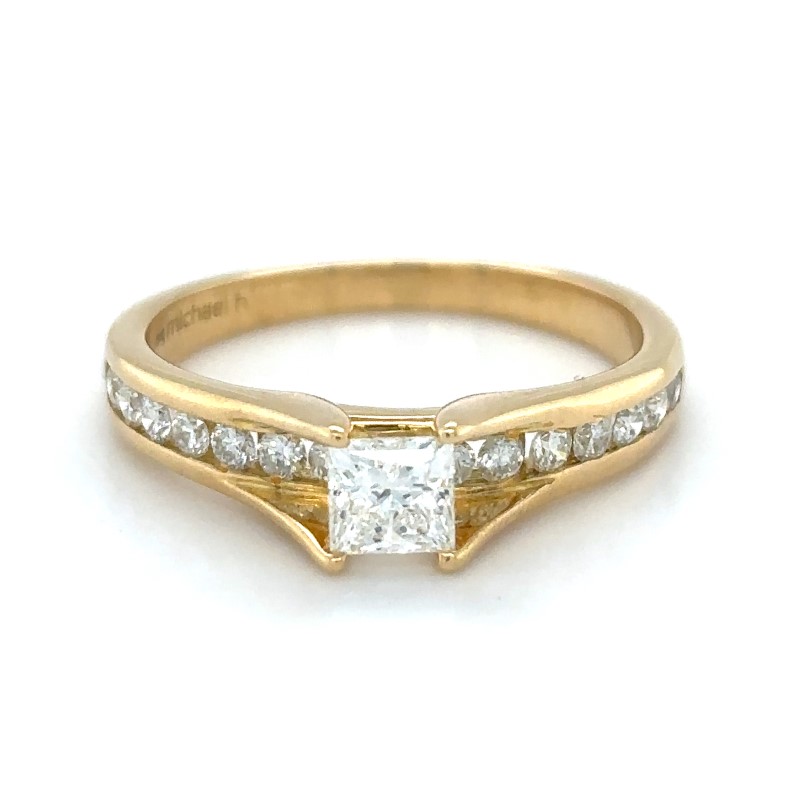 Make / Model: Princess Cut Diamond 4 Claw Set With Round Brilliant Cut Diamonds Channel Set In The Under-Rail