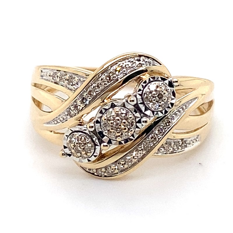 9CT YELLOW & WHITE GOLD SPLIT SHOULDER DIAMOND DRESS RING