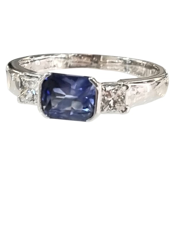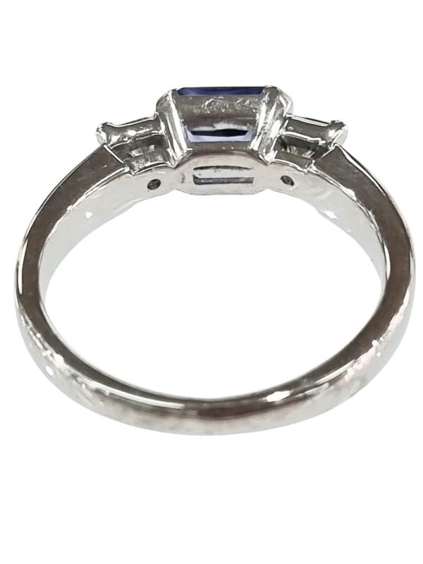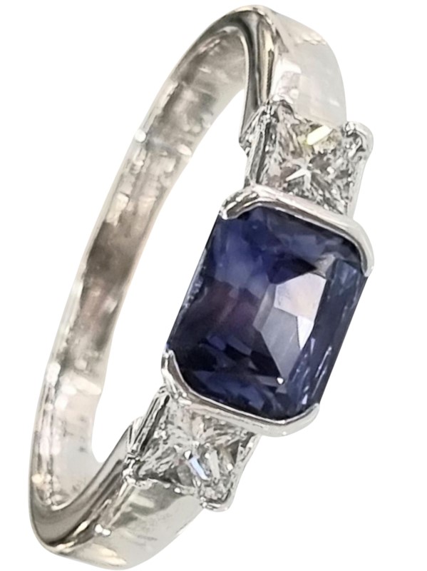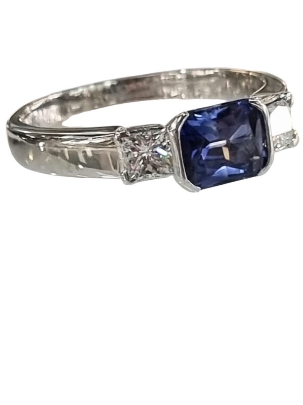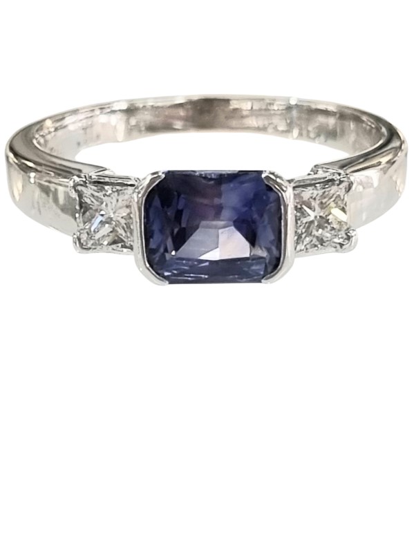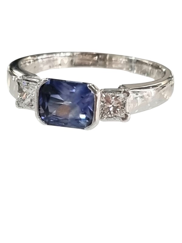 This elegant 18ct white gold trilogy ring features a stunning display of a sparkling 1.50ct Ceylon sapphire, accompanied by a total diamond weight of 0.44ct. The smooth band and trilogy design create a timeless, feminine aesthetic suitable for any occasion. Crafted with care, this handmade ladies' ring is a refined addition to any jewellery collection. All sizes and measurements are approximate.