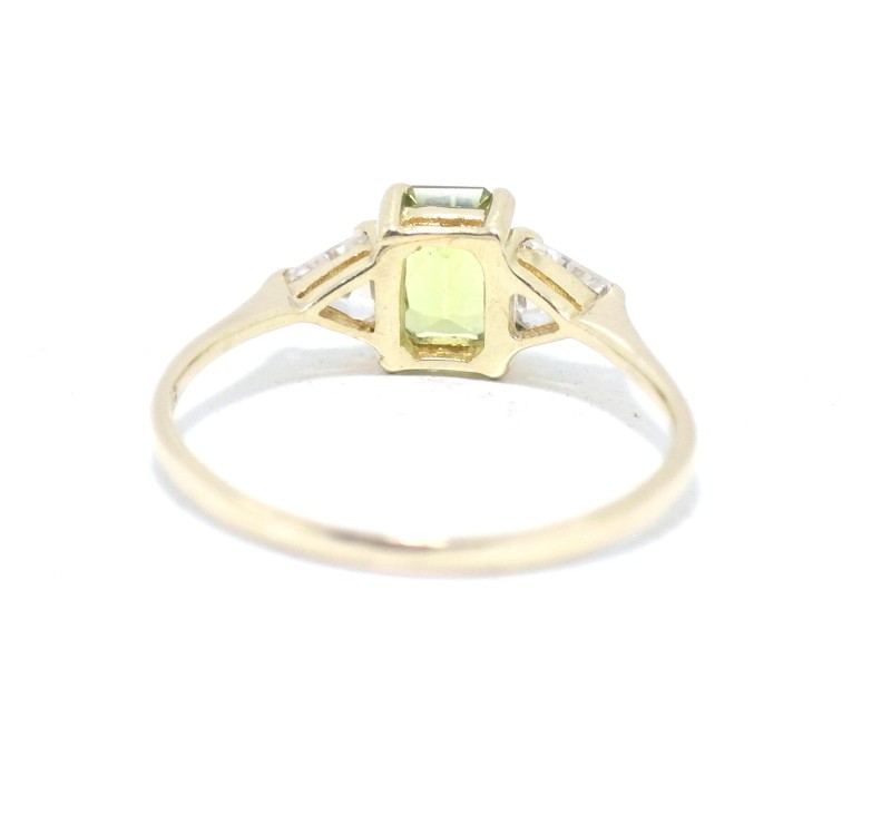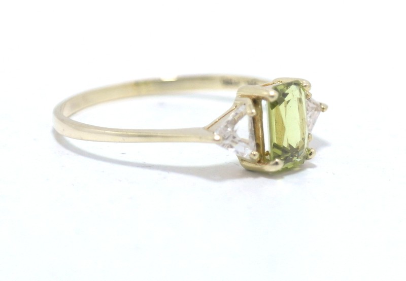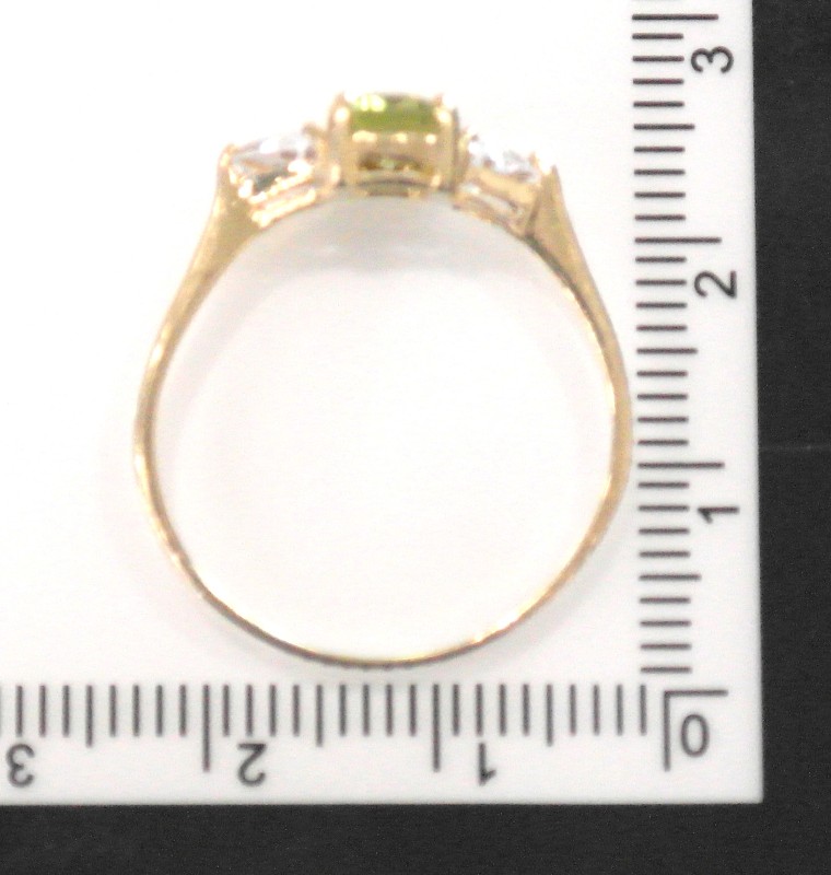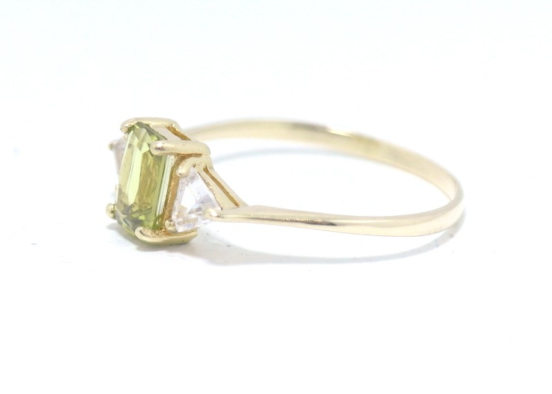 Exquisite 9K yellow gold ring featuring a classic solitaire design. The smooth band is crafted from durable yellow gold, while the claw setting securely holds two clear stones and a yellow stone. Engraved with the hallmark '9K THL', this ladies' ring has a total weight of 1.84g and a size S fit. All sizes and measurements are approximate.