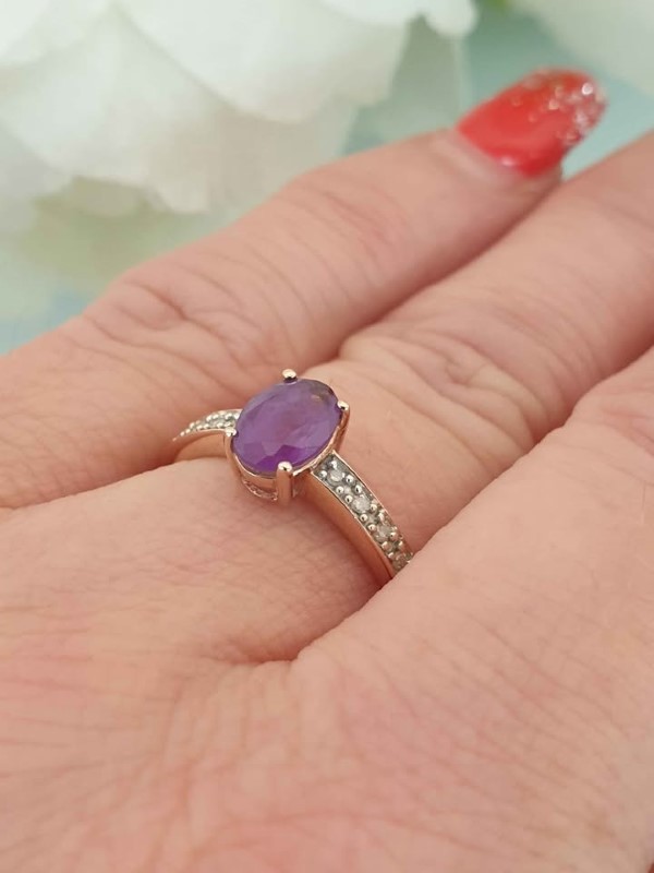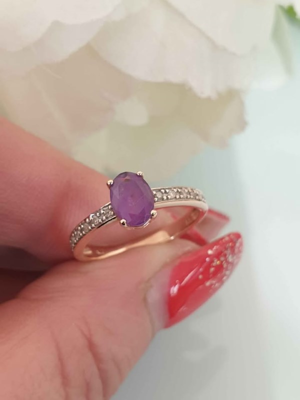 Make / Model: 9K Rose Gold Diamond And Amethyst Ring