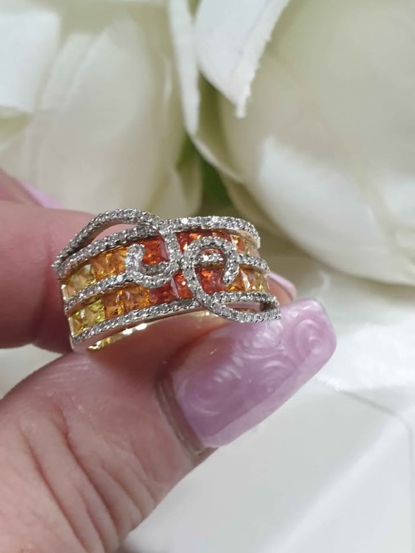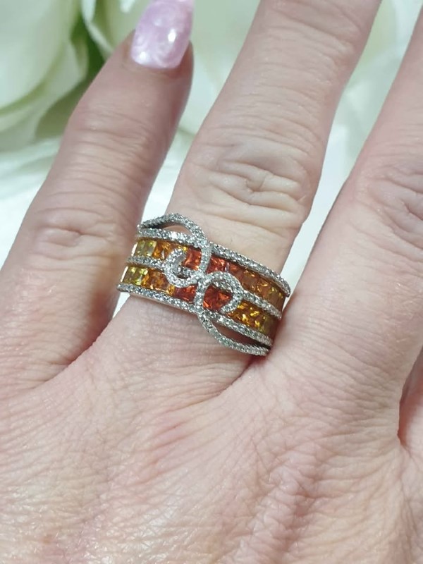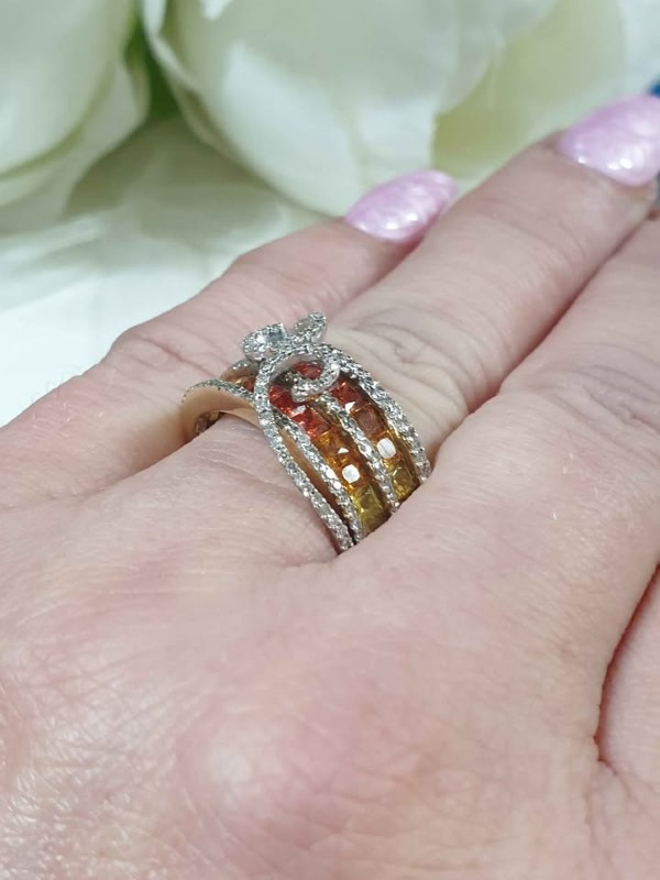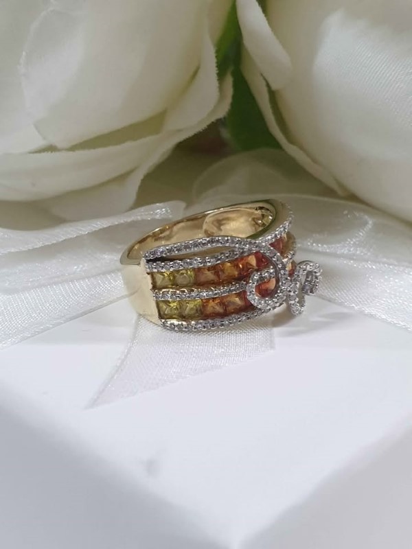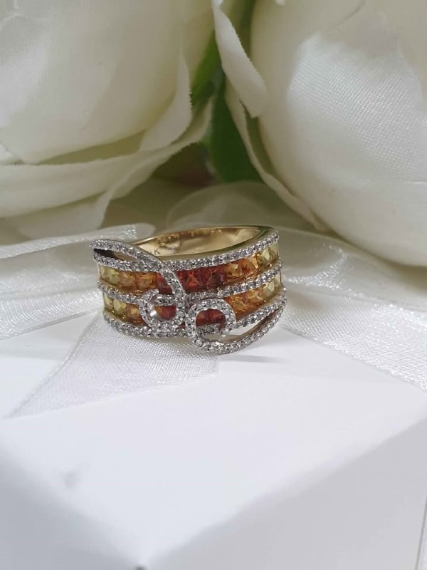 Make / Model: 9K Gold Diamond And Sunset Yellow And Orange Sapphire Ring