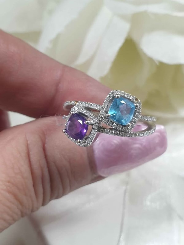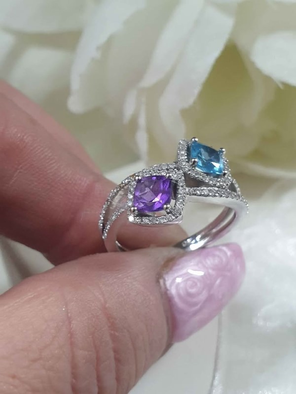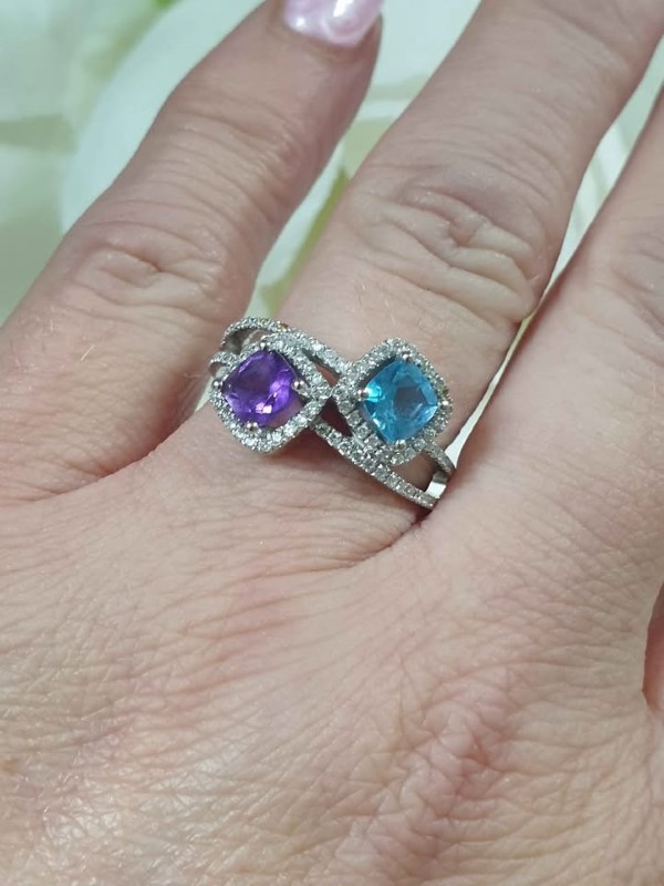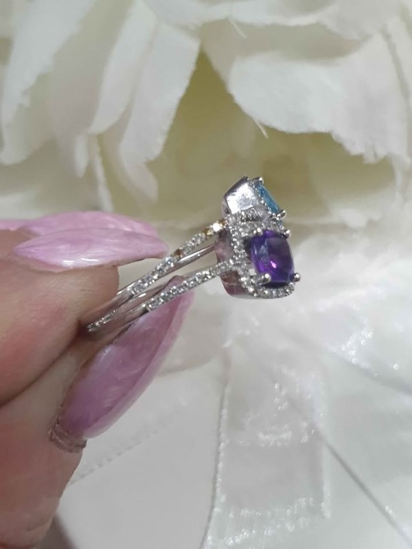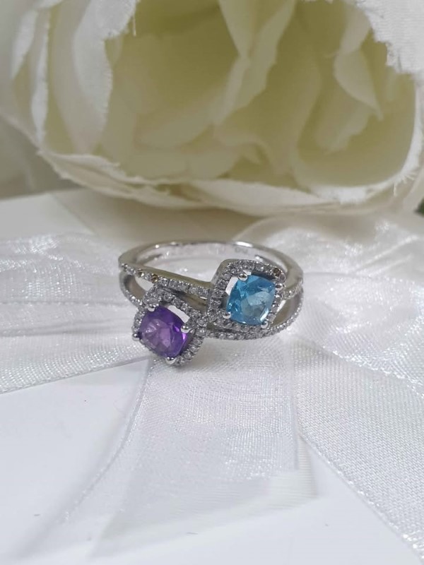 Make / Model: 18K White Gold Diamond , Topaz And Amethyst Ring