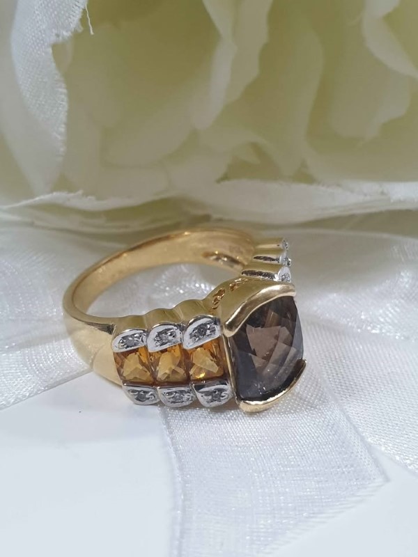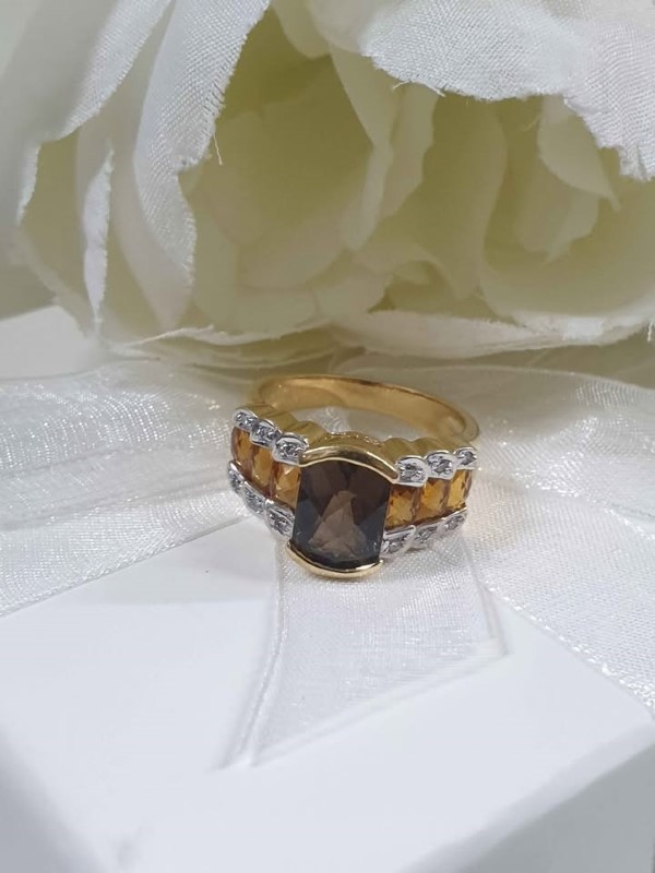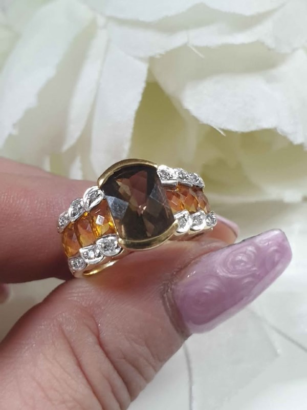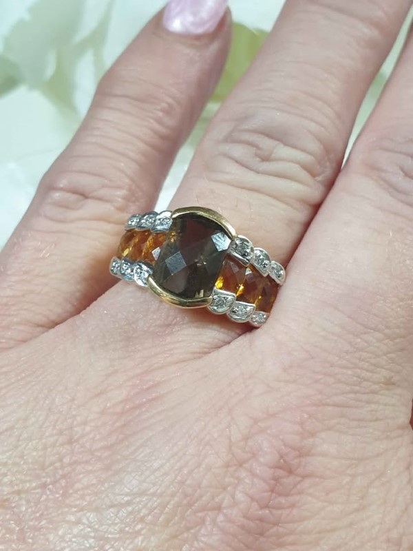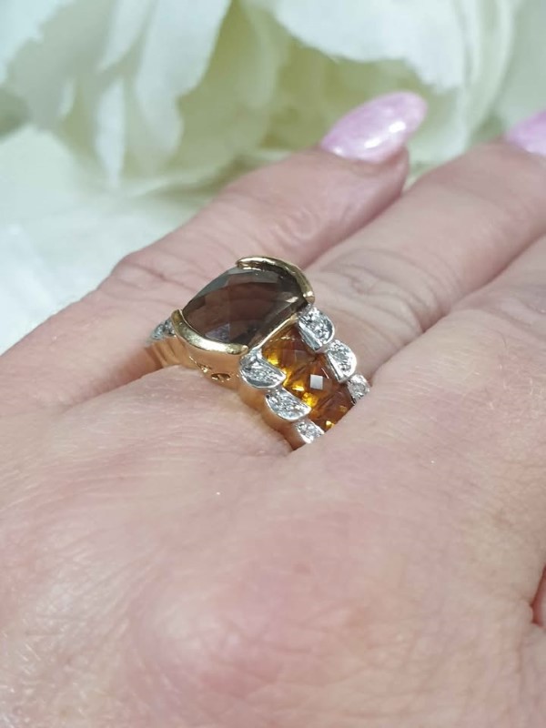 Make / Model: 18K Gold Diamond Smokey Quartz And Citrine Ring
