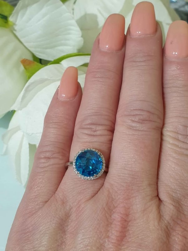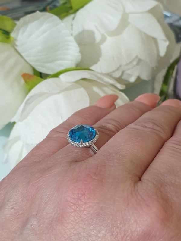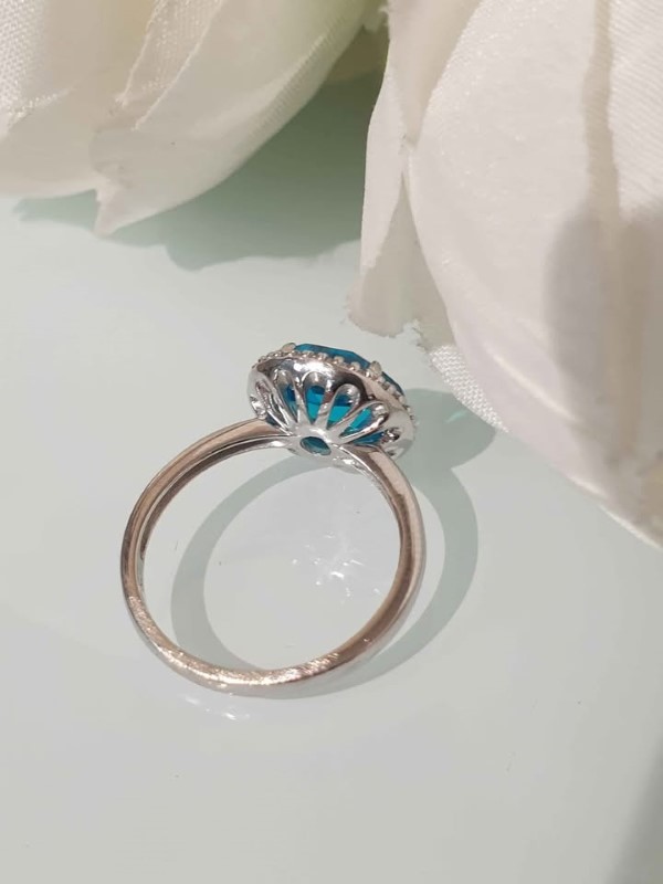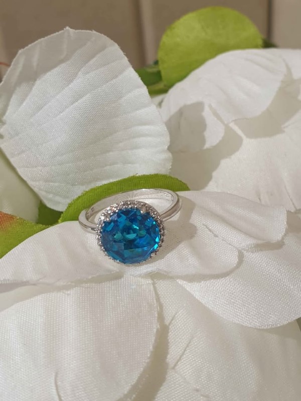 Make / Model: 9K White Gold Blue And Clear Cz Ring