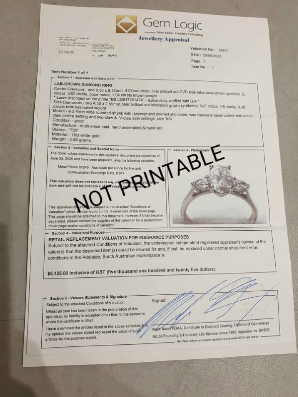 Make / Model: 18K White Gold Lab Diamond 1.54 And Diamond Ring