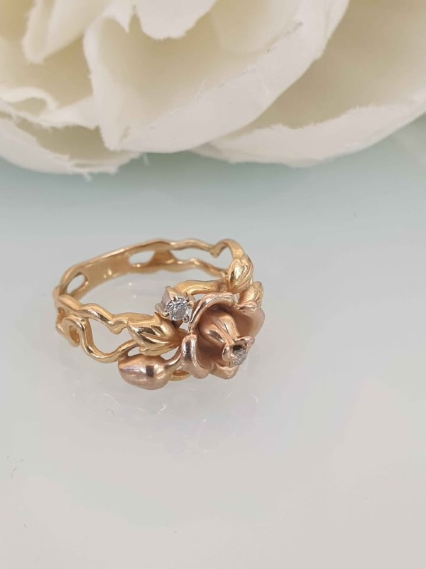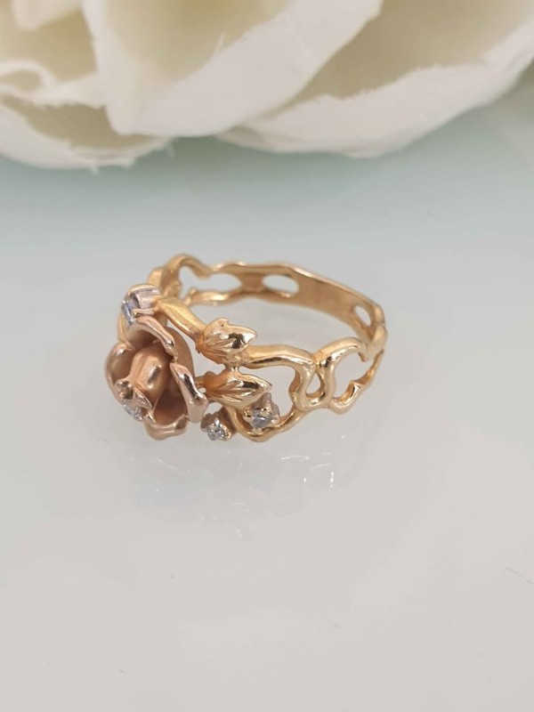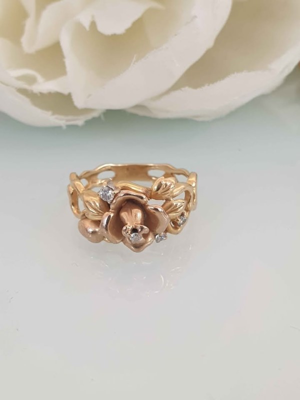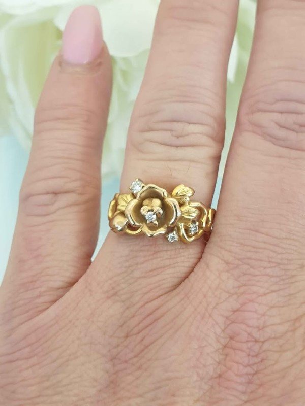 Make / Model: 18K Gold Diamond Flueur De Lis Rose Ring