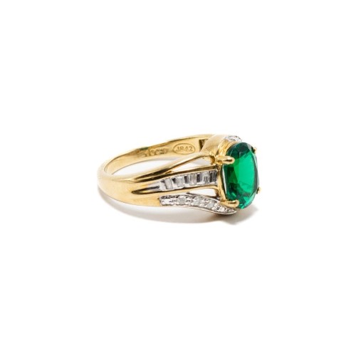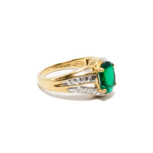 9ct Yellow Gold Oval Created Emerald & 0.10CTW Diamond Ring.