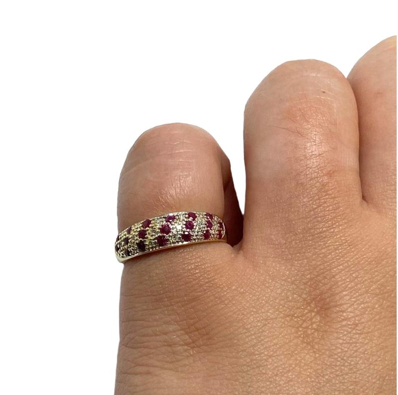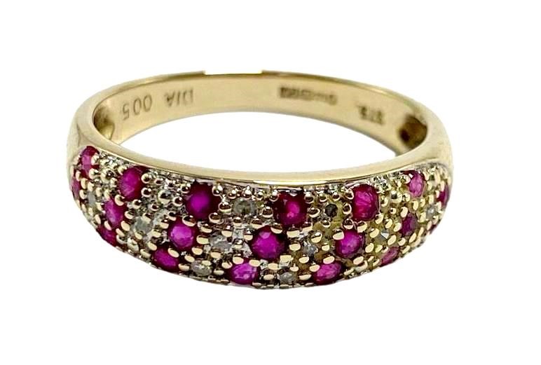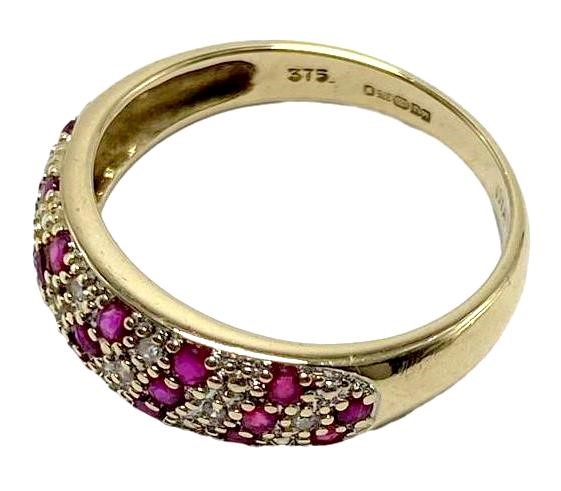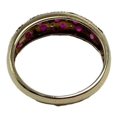 9ct Yellow gold ring with created rubies & diamonds, stamped 375.