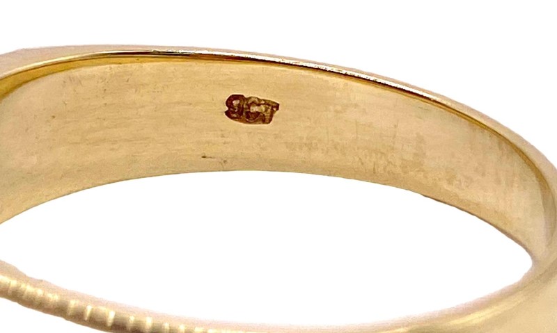 Ring is stamped 9CT, weighs 4.11grams, and is size R½.
