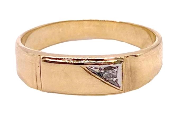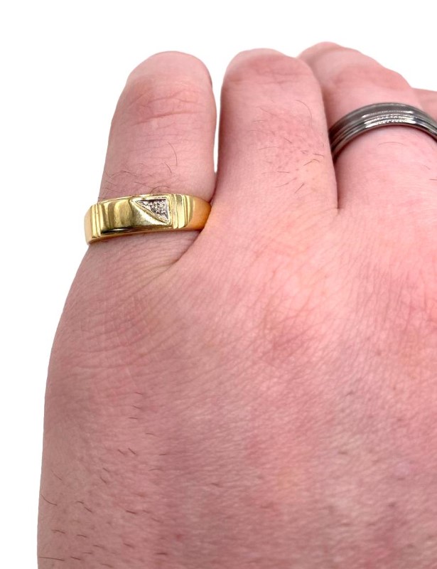 Men's 9ct yellow signet ring with small diamond white gold claw-set into one corner of the signet.