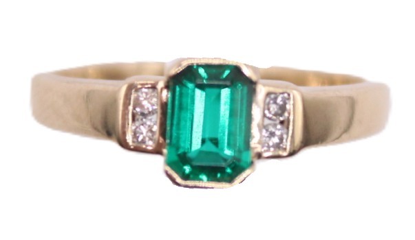 Make / Model: Synthetic Emerald With Natural Round Brilliant Diamonds H I2