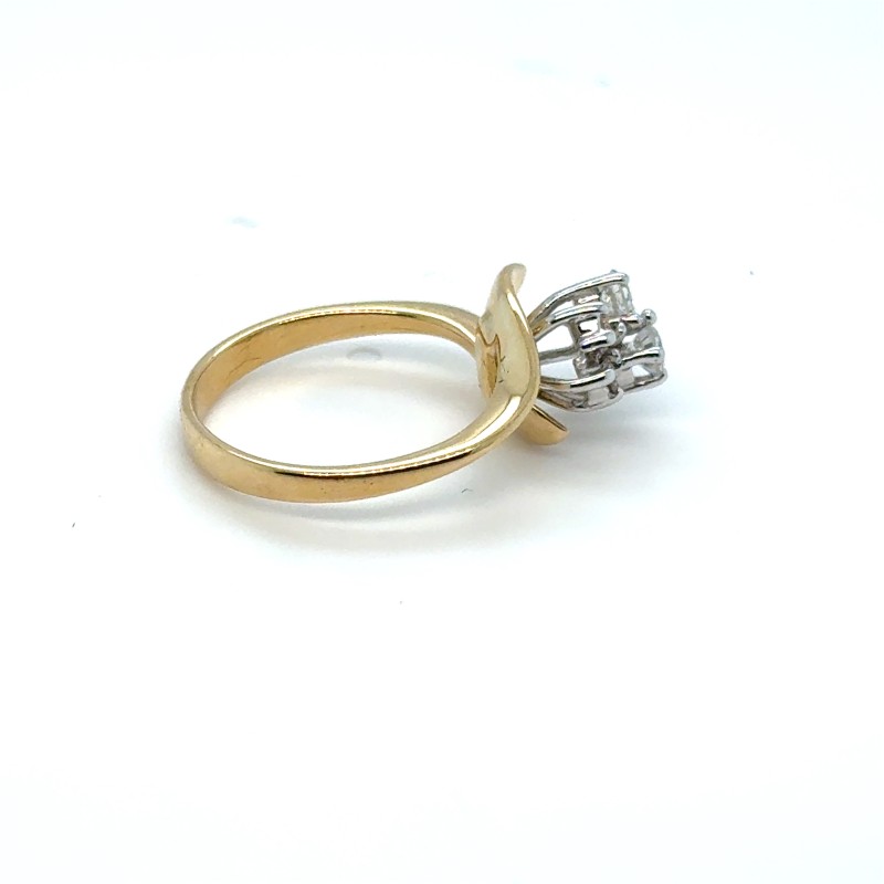 Make / Model: 18ct Yellow Gold Ring With Diamonds Claw Set In Raised White Gold Cluster Setting With Wrap Around Shoulders