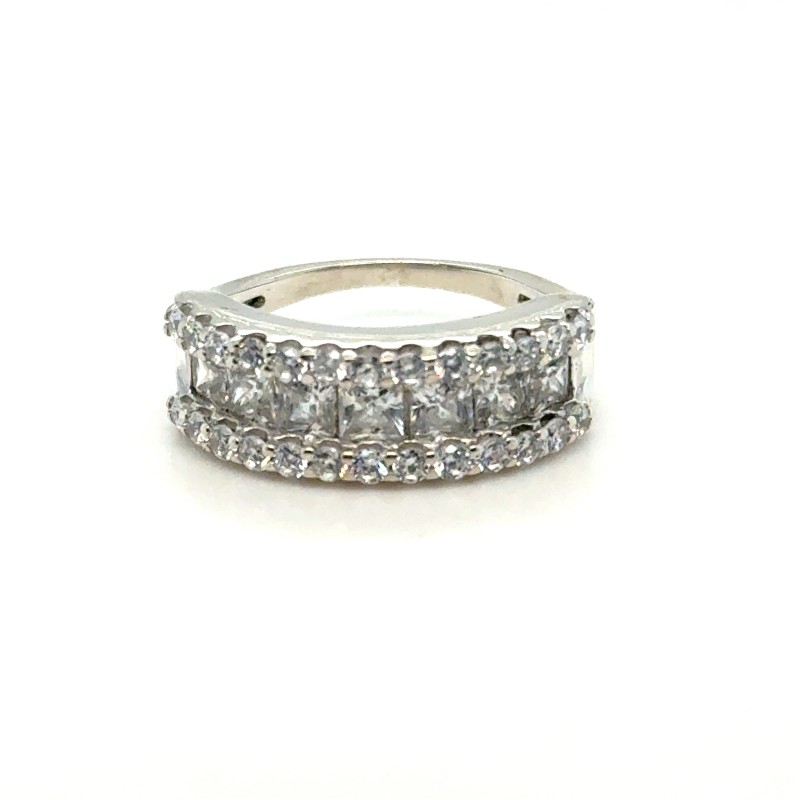 Make / Model: Sterling Silver Row Of Baguette Cz's With Row Of Grain Set Cz's On Each Side