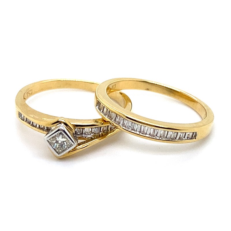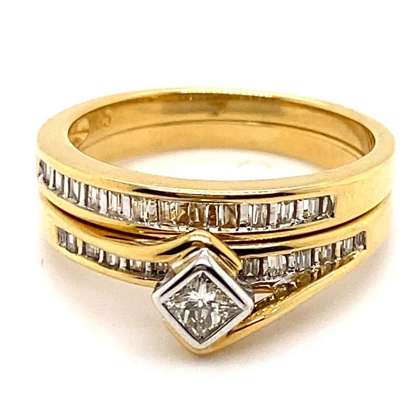 Make / Model: Princess Cut Diamond Bezel Set In White Gold With Baguette Cut Diamonds Channel Set In The Under-Rail And In The Matching Wedding Ring