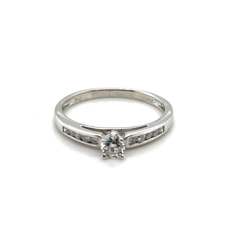 White Gold Round Brilliant Cut Diamond 4 Claw Set With Round Brilliant Cut Diamonds Channel Set In The Shoulders