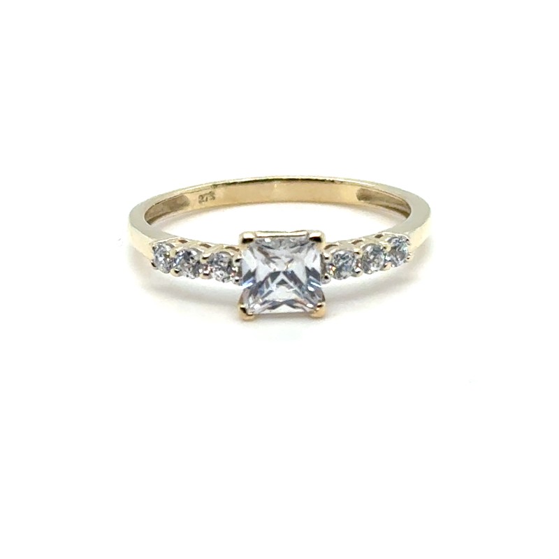 Make / Model: Yellow Gold Square Cut Cz With Cz's Set In Flow Up Sides