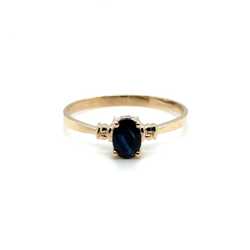 Yellow Gold Oval sapphire 4 claw set in the ring