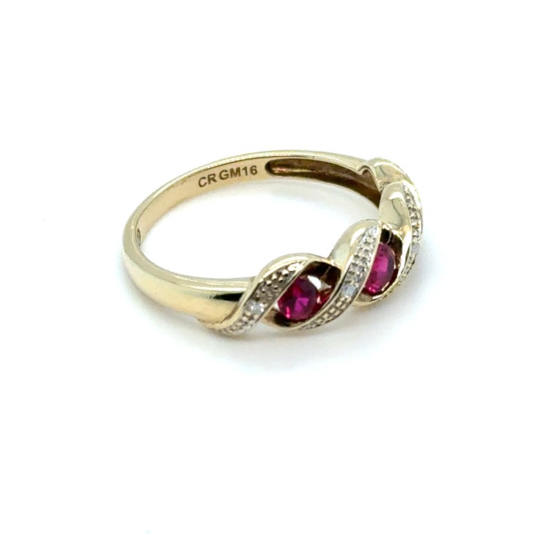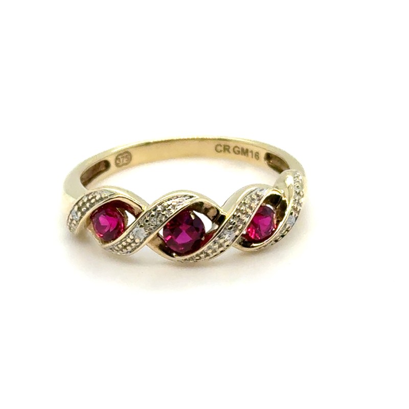 Make / Model: Yellow Gold Created Rubbies With Diamonds Set In Wave Pattern Between Each
