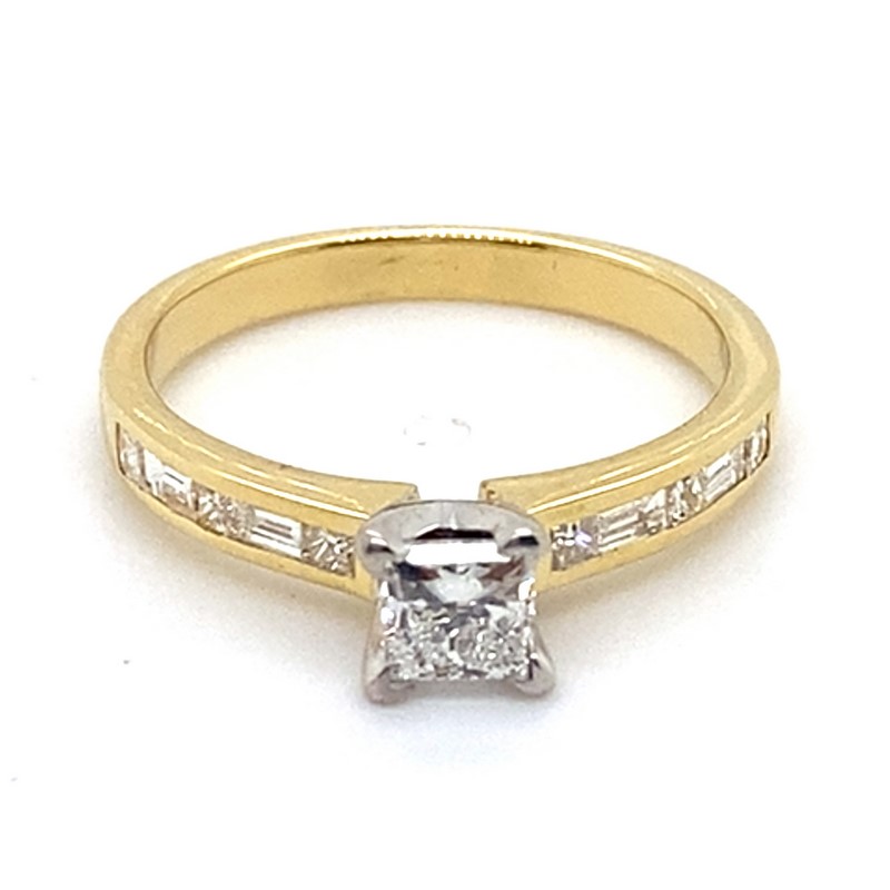 Princess Cut Diamond 4 Claw Set In The Raised White Gold Setting With Baguette And Princess Cut Diamonds Channel Set In The Shoulders