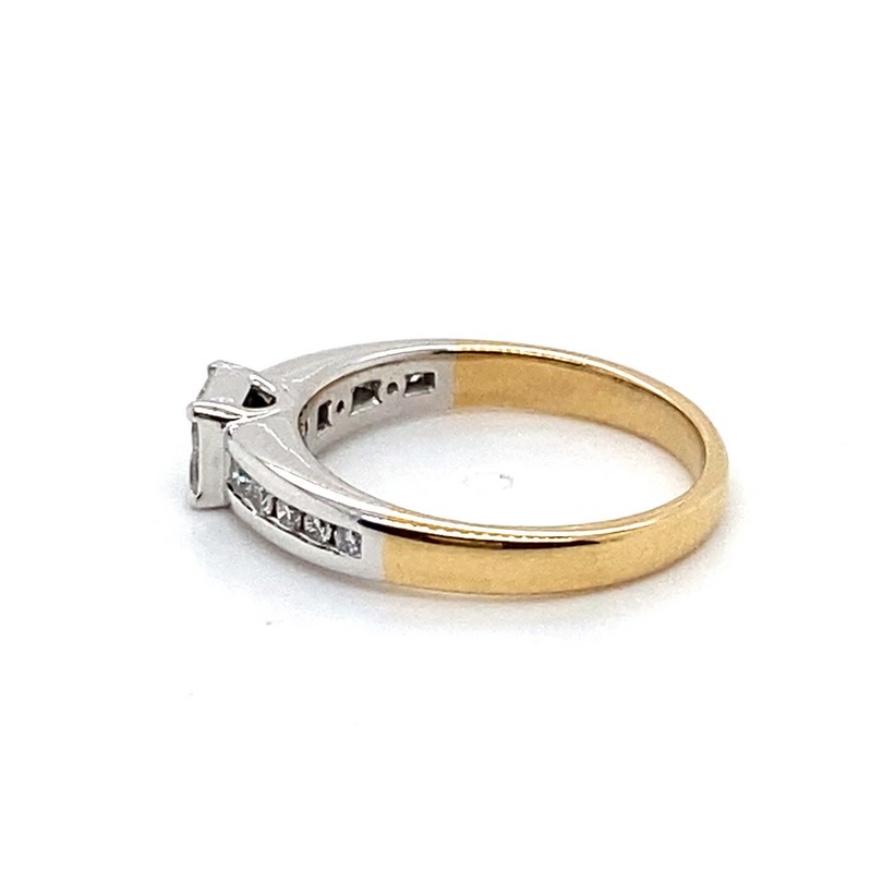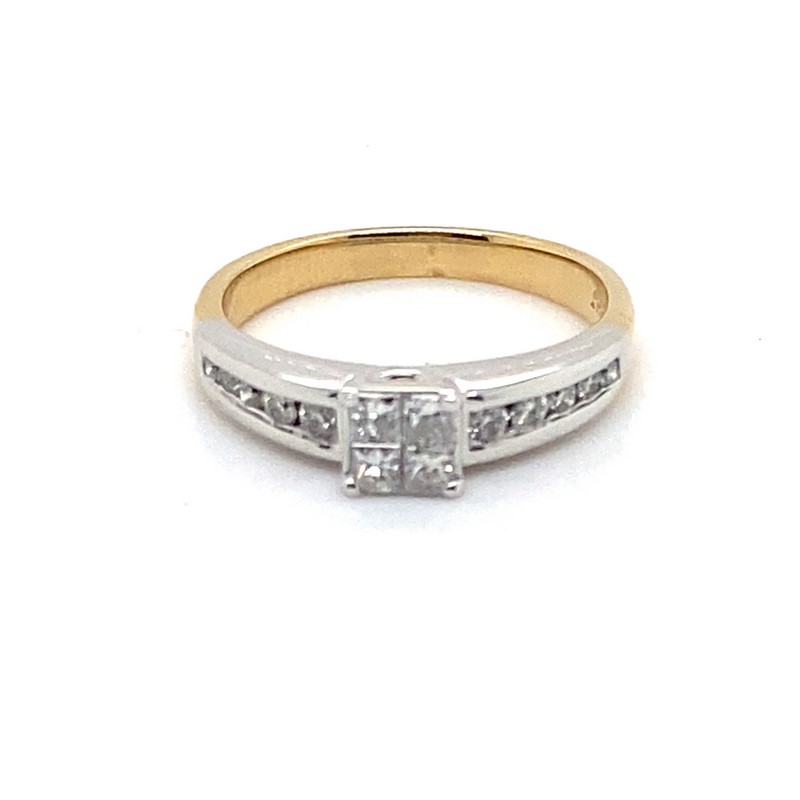 Princess Cut Diamonds Invisible And Claw Set In The Raised Setting With Round Brilliant Cut Diamonds Channel Set In The Shoulders